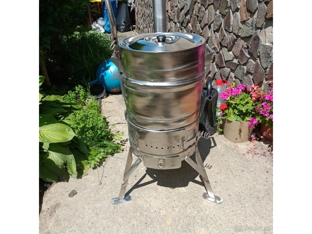 30 Liter Edelstahl-UTSCHAK MIT ABZUGS-ROHR und mit Gulaschkessel alle von chirurgischem Stahl
