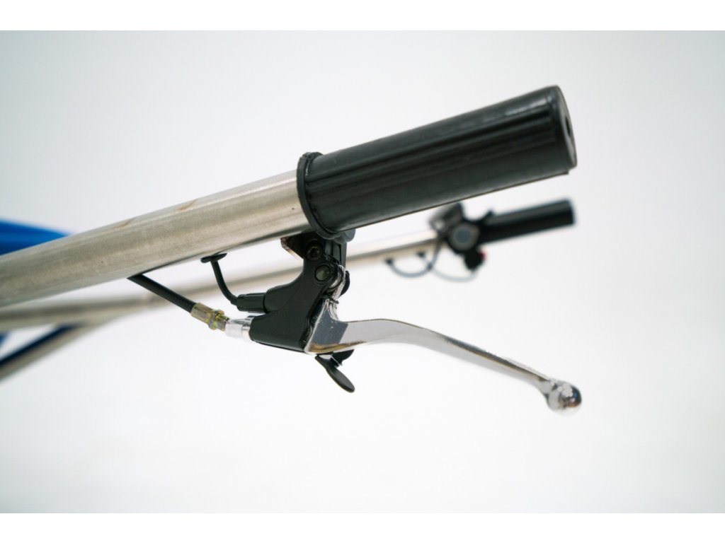 Die Edelstahlkonstruktion und die HDPE-Kunststoffwanne machen die SmartWiel besonders widerstandsfähig und langlebig. Eine Trommelbremse sorgt für sicheres Fahren bergab.
