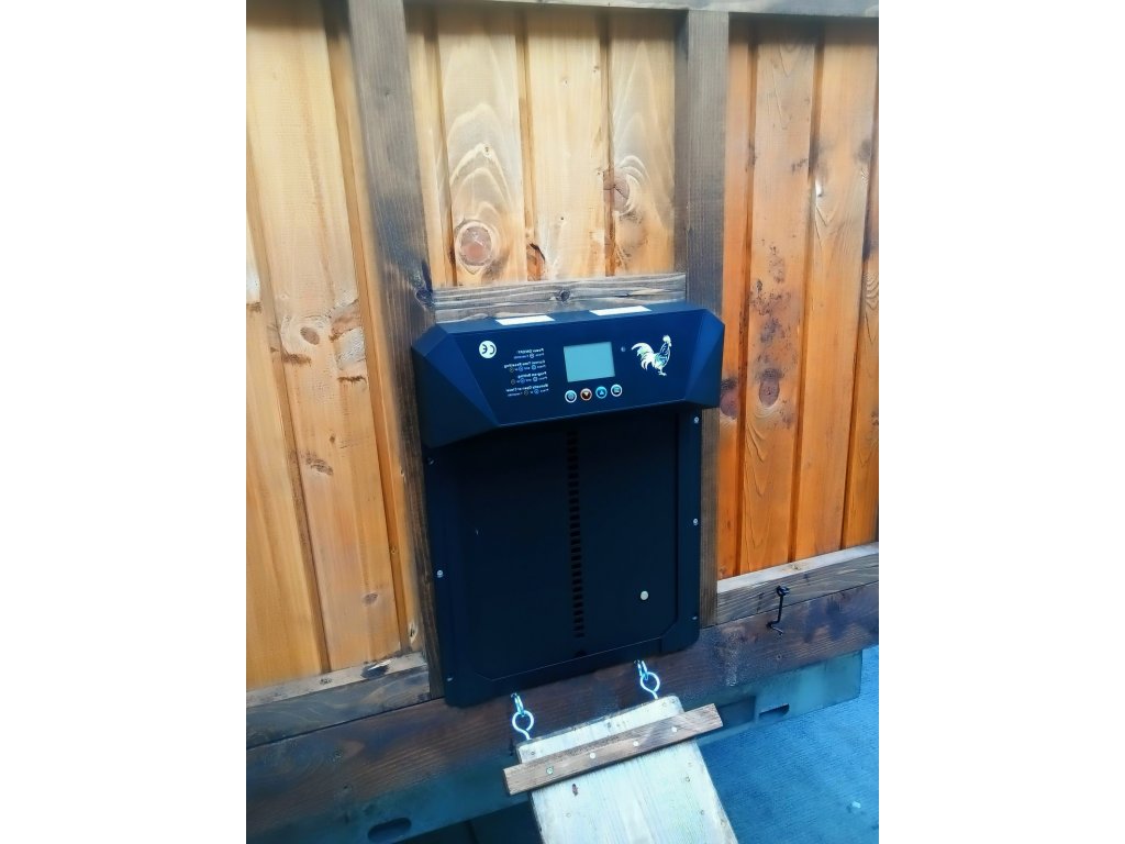 Die Stromversorgung erfolgt über einen integrierten Akku, der kontinuierlich durch ein Solarpanel aufgeladen wird – kein Stromanschluss am Hühnerstall notwendig, kein Batteriewechsel erforderlich.