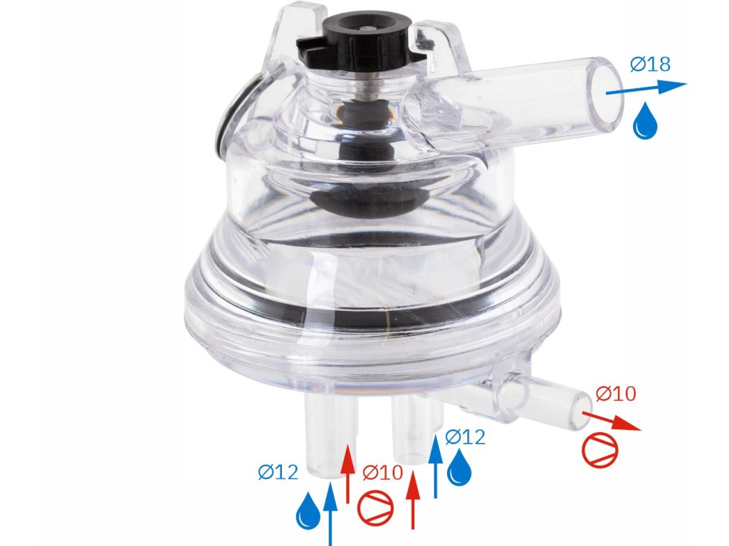 Milchkammer (mit transparentem Deckel) mit einem Auslass von Ø18 mm.