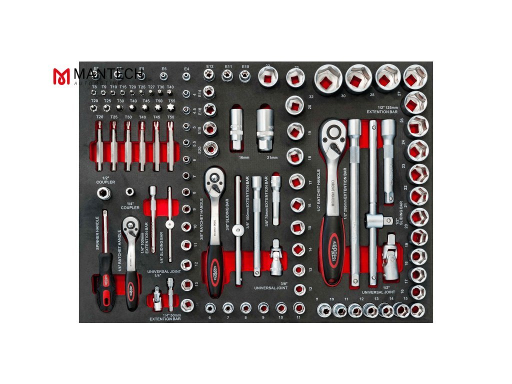 - Optimale Organisation durch modulare Werkzeugsätze in ölresistenten Schaumstoffeinlagen