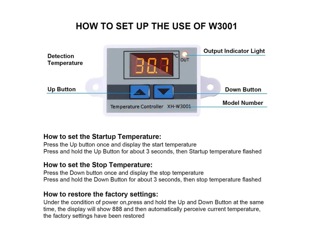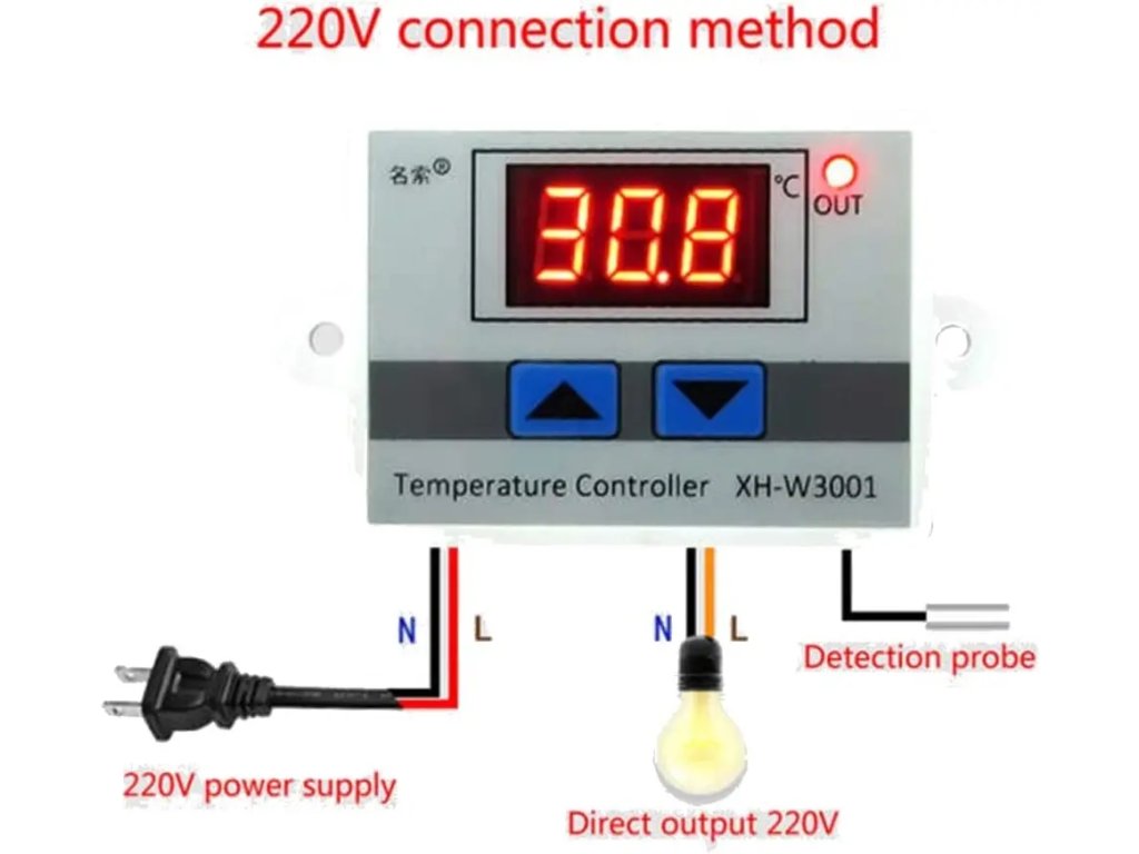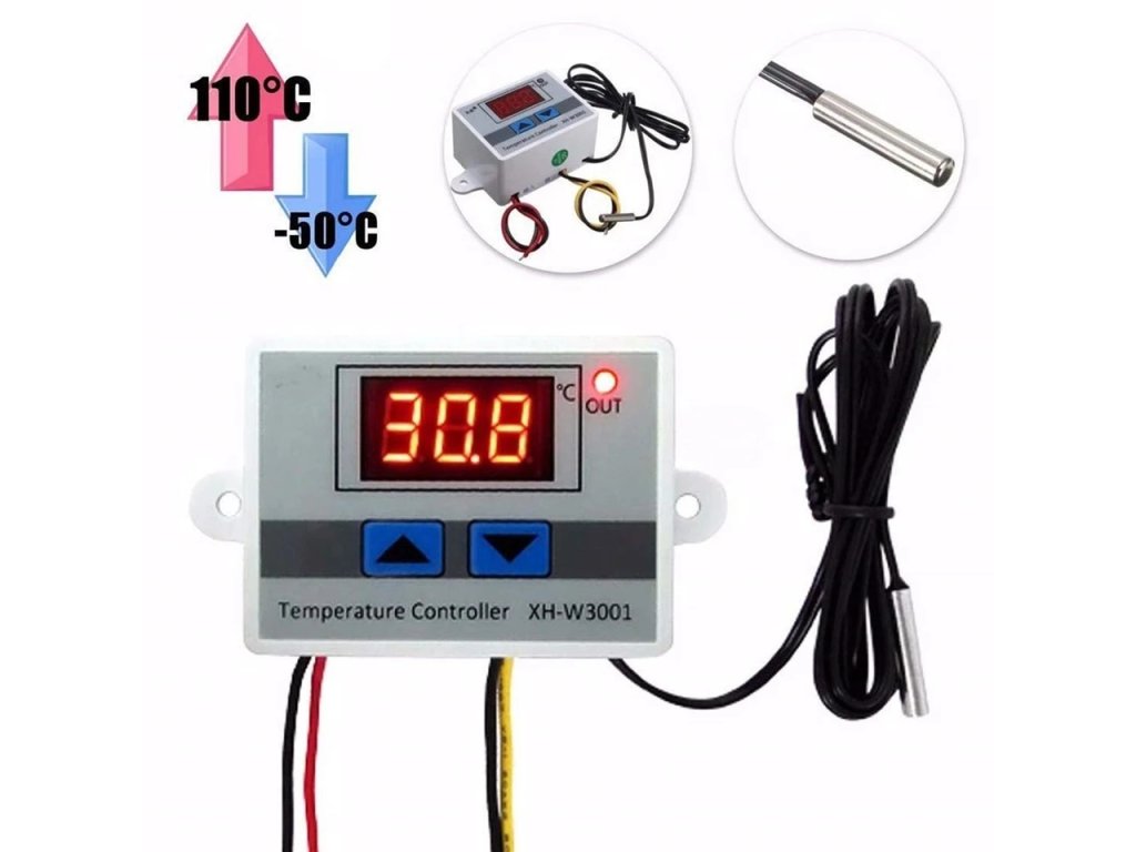 LED-Display zeigt die Ergebnisse deutlich an. Hohe Temperaturkontrollgenauigkeit von 0.1 ℃. Großer Temperaturregelbereich von -50°C bis 110°C. 1m wasserdichte Sonde ist für die bequeme Nutzung ausgestattet. Kann direkt installiert werden oder eingebettet werden in industrielle Steuergeräte Panel, bequem und schnell.