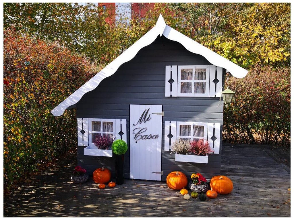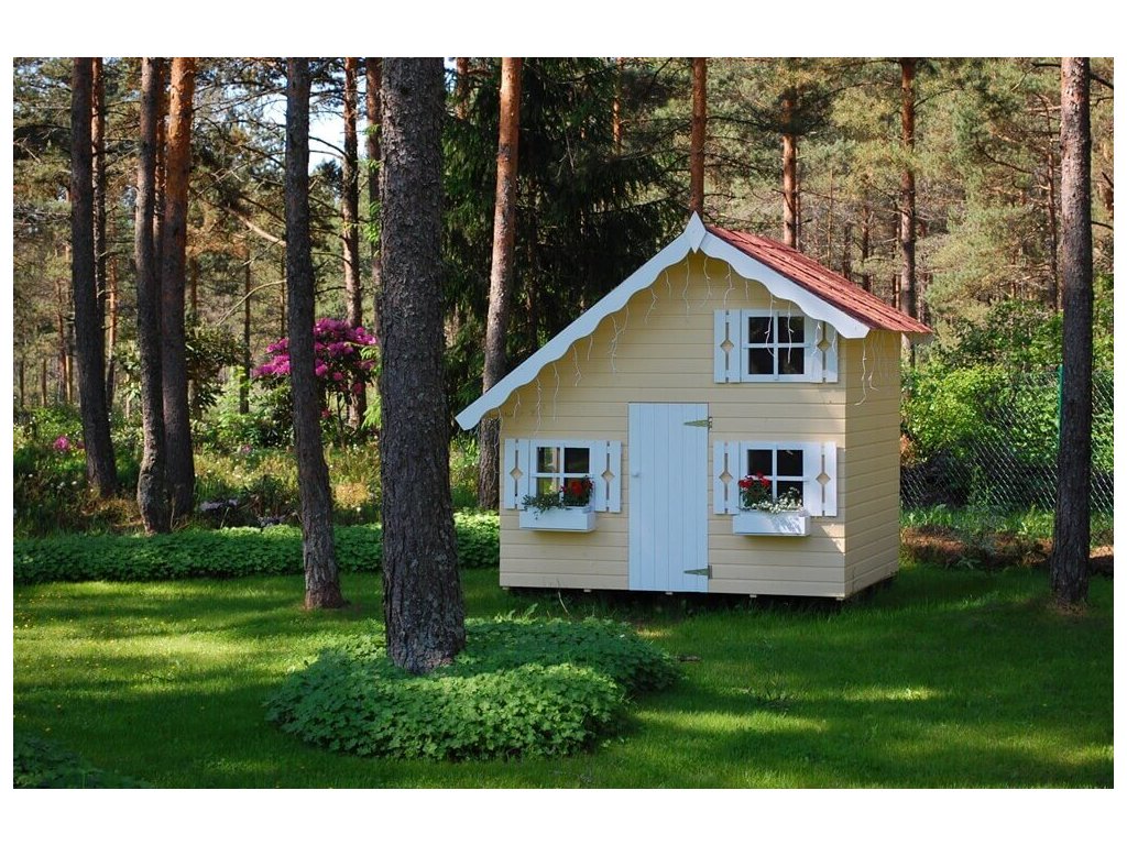 Das Spielhaus wird naturbelassen, ohne Oberflächenbehandlung und ohne Dacheindeckung geliefert, sodass Sie die Farbgestaltung individuell an Ihren Garten anpassen können.