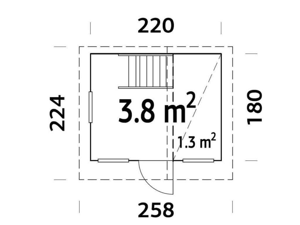 - Abmessungen des Häuschens (B × T): 220 × 180 cm